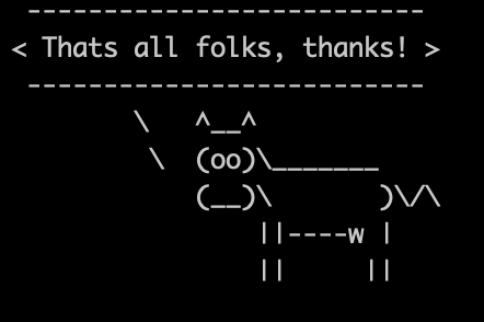 $ ./moo Thats all folks, thanks!